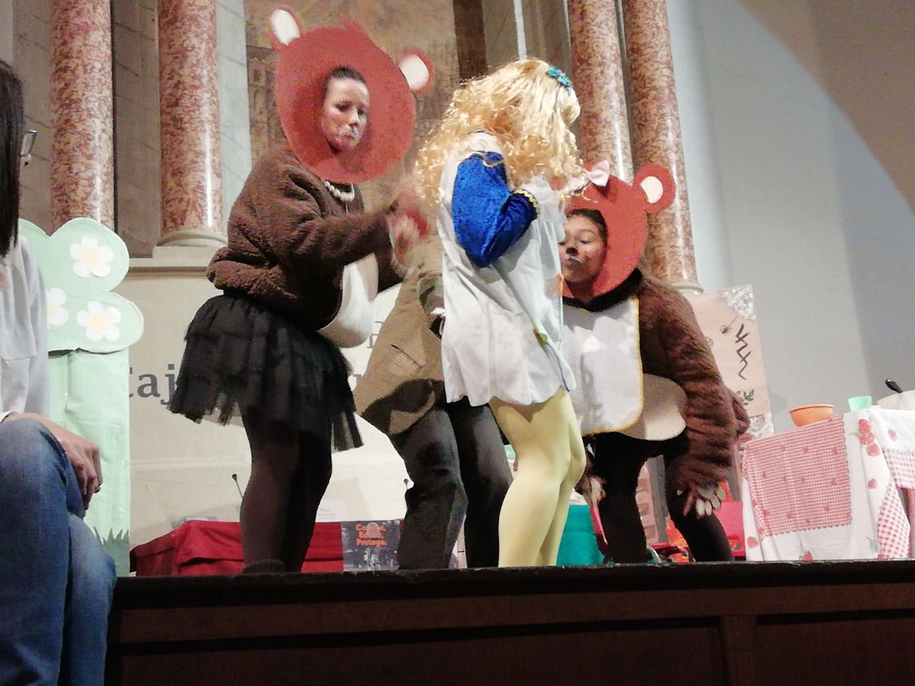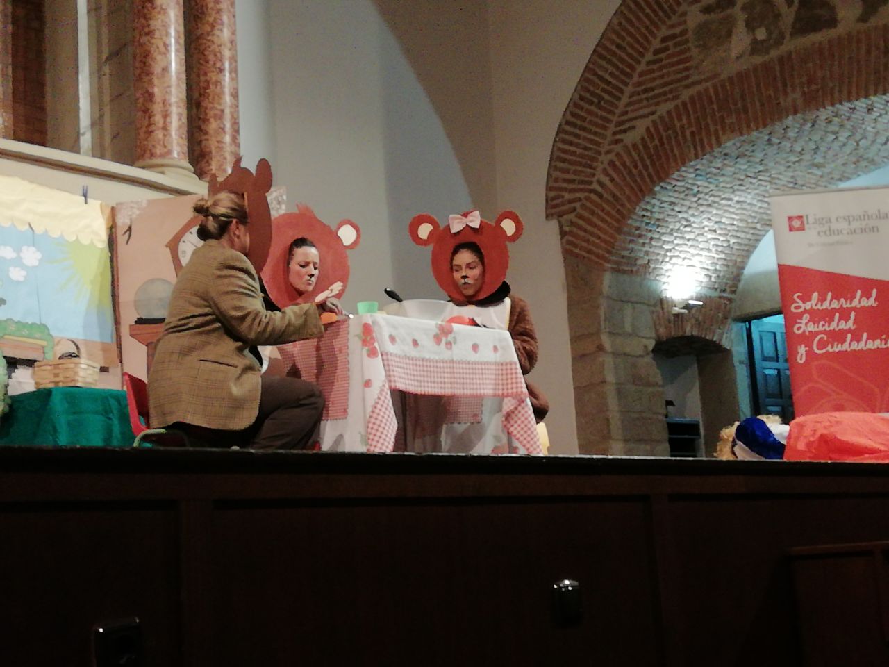 Durante la actuación infantil, los y las pequeñas de la Dulce Chacón, de 2 años de edad, bailaron y cantaron unas canciones que habían preparado para sus familias, y disfrutaron de la adaptación de Ricitos de Oro que el grupo de madres y padres de la escuela organizaron y ambientaron en el otoño. Cerraron la diversión otra vez los niños, que al final se subieron al escenario a bailar con Ricitos y los tres osos.