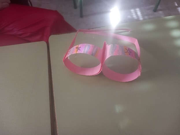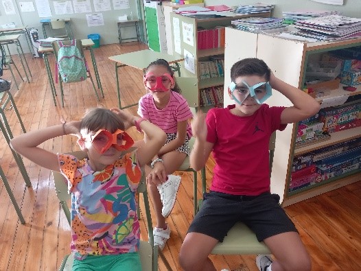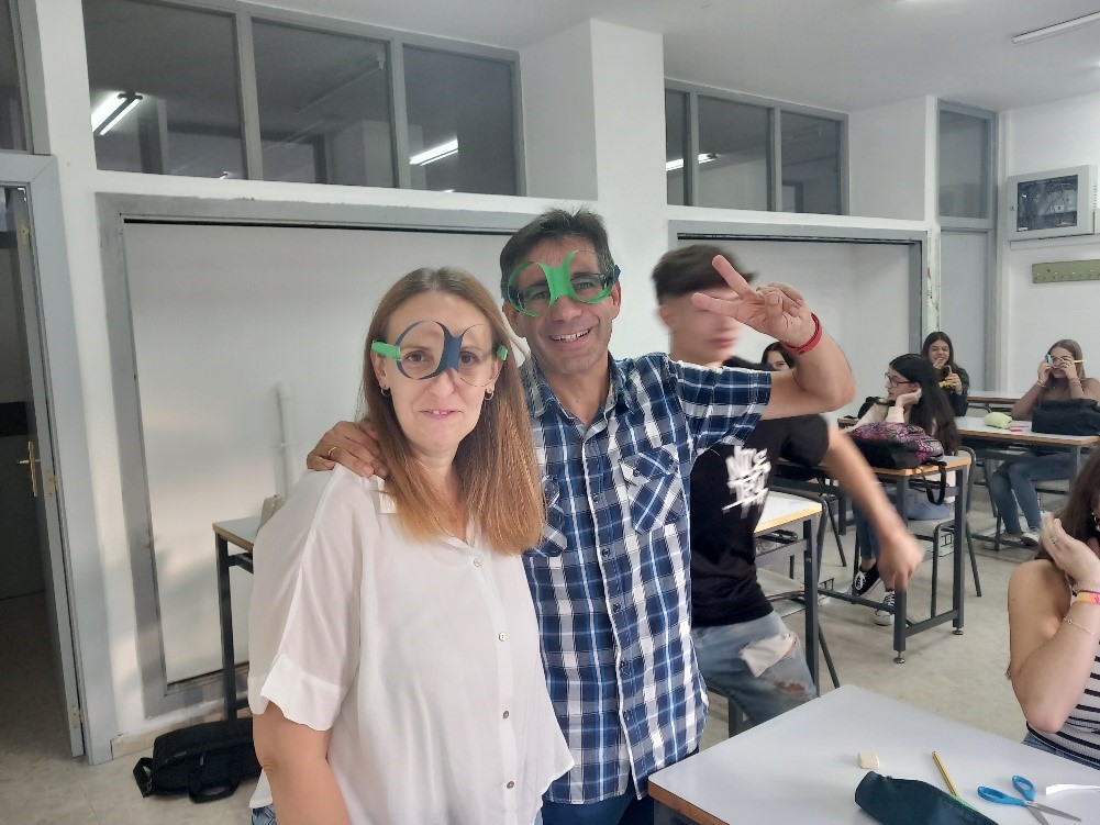 Alumnos y profesores con las “Gafas de Ver el Mundo Bonito” para saber ver y buscar soluciones a los problemas que nos atañe sobre Justicia Social. Primera sesión realizada en el IES Valle del Ambroz y CRA Vía de la Plata en Aldeanueva del Camino