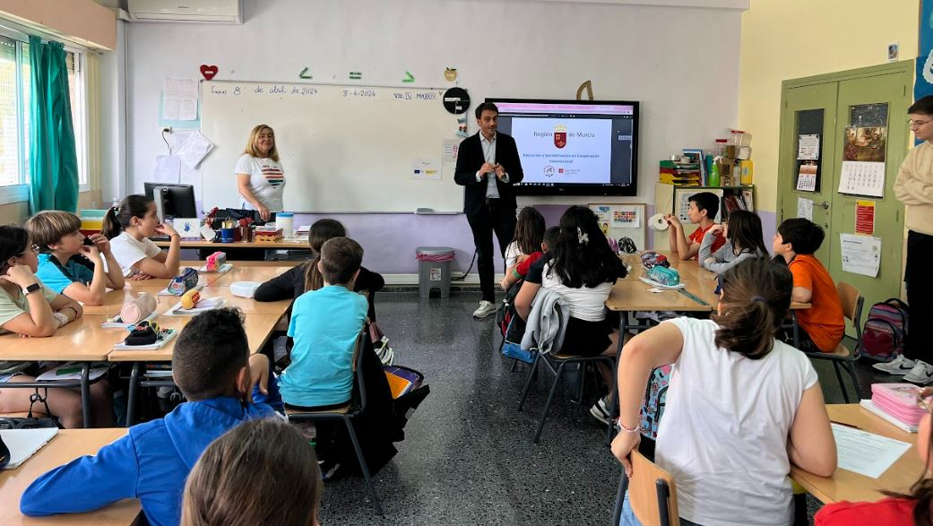 Este programa está financiado por la CARM, en concreto forma parte de las acciones que desarrolla la Dirección General de Acción General y Cooperación. Para dar inicio al mismo hemos contado con la visita de Juan José Almela Martínez, Director General de Acción y Cooperación, quien ha charlado con el alumnado de 4º de primaria sobre cooperación y la importancia de la misma.