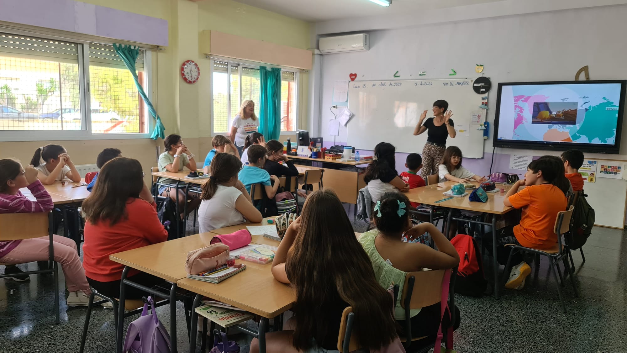 Niñas y niños han debatido y trabajado sobre cooperación en el primero de los talleres desarrollados del programa guiados por la educadora de la ONG Liga Española de la Educación y la Cultura Popular Mireia Pilar Ruiz Manresa, quien a lo largo de 3 sesiones de trabajo, trabajará con el alumnado de 4º de primaria los diferentes aspectos de la cooperación y la sostenibilidad social y ambiental.