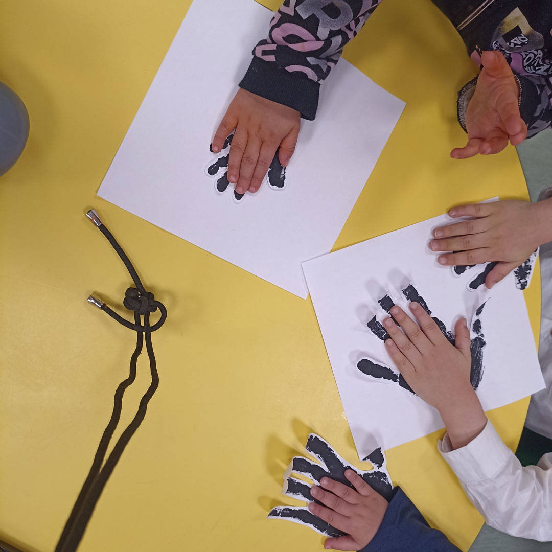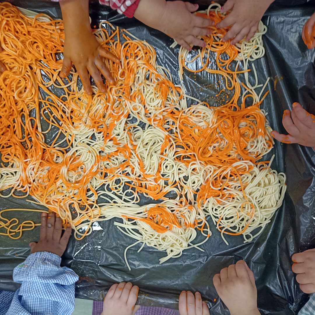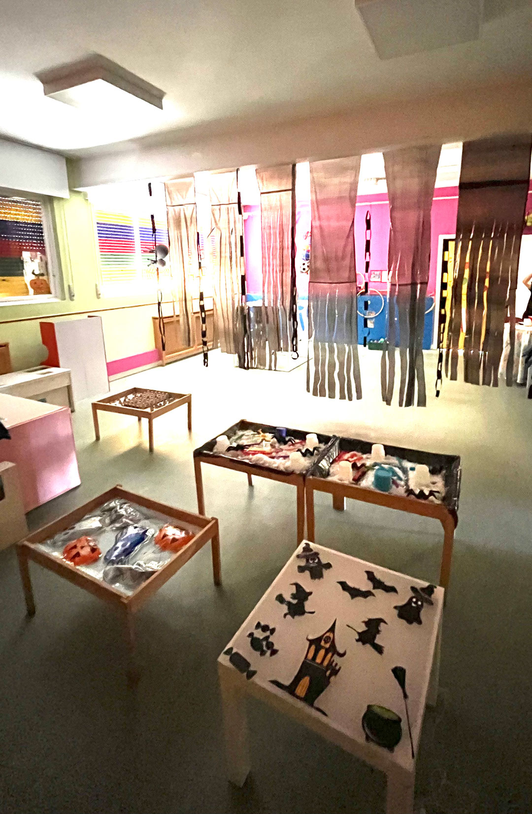 Hemos realizado diferentes actividades terroríficas: hemos pintado arañas con nuestras manos, hemos manipulado gusanos (espaguetis), hemos realizado fantasmas y, para terminar la semana, hemos celebrado una fiesta con una provocación de juego con materiales de la temática.