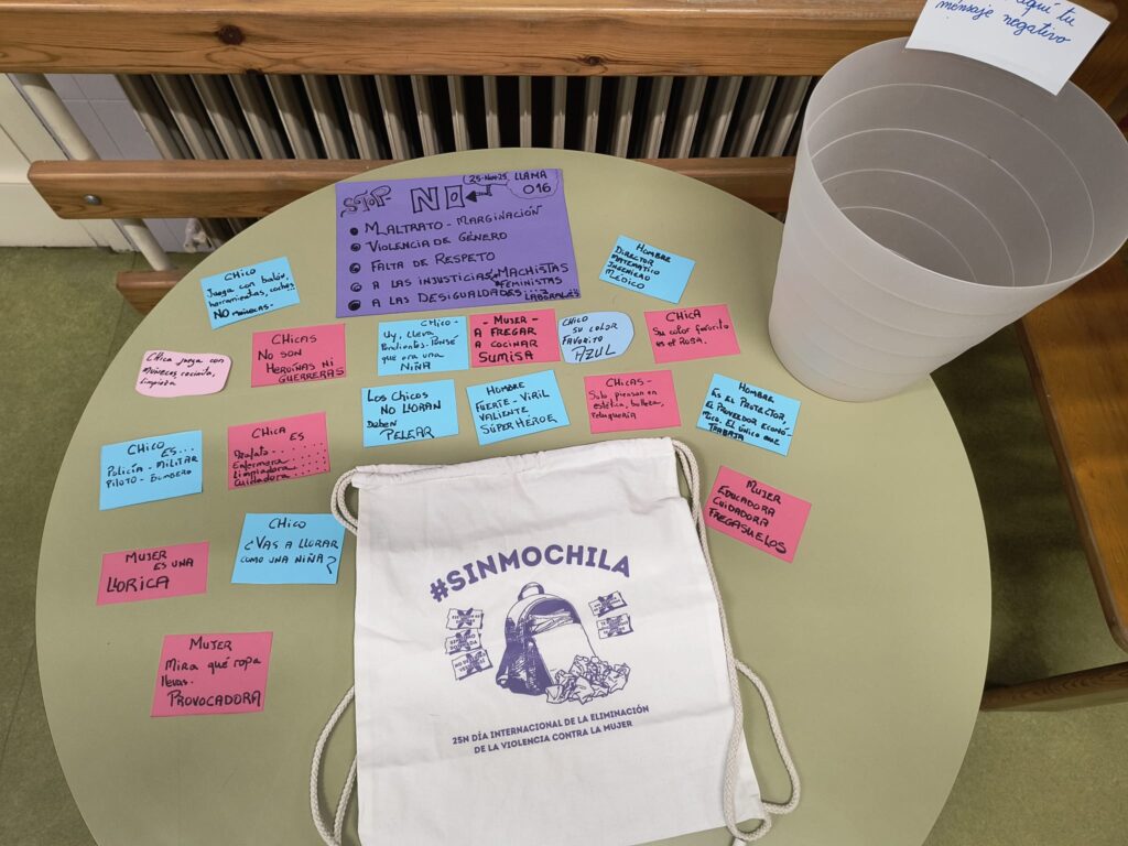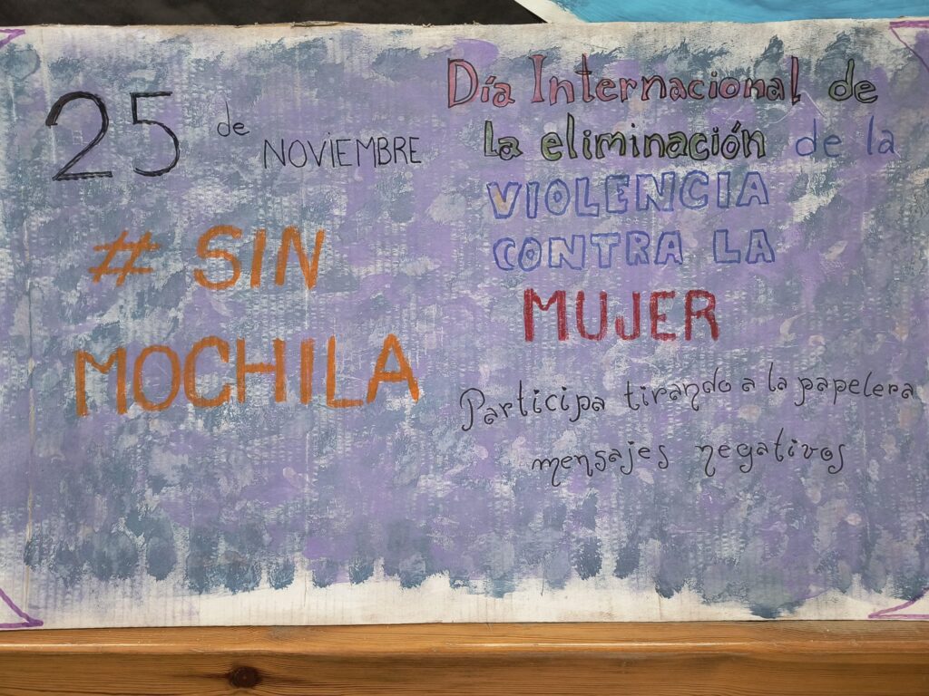 Participamos, junto con otros proyectos socioeducativos del barrio, en la iniciativa Marcha sin mochila del CEAS del barrio. Somos conscientes de cada uno de nosotros/as cargamos con una “mochila” que llevamos a la espalda con los roles y estereotipos de género que están presentes en el día.