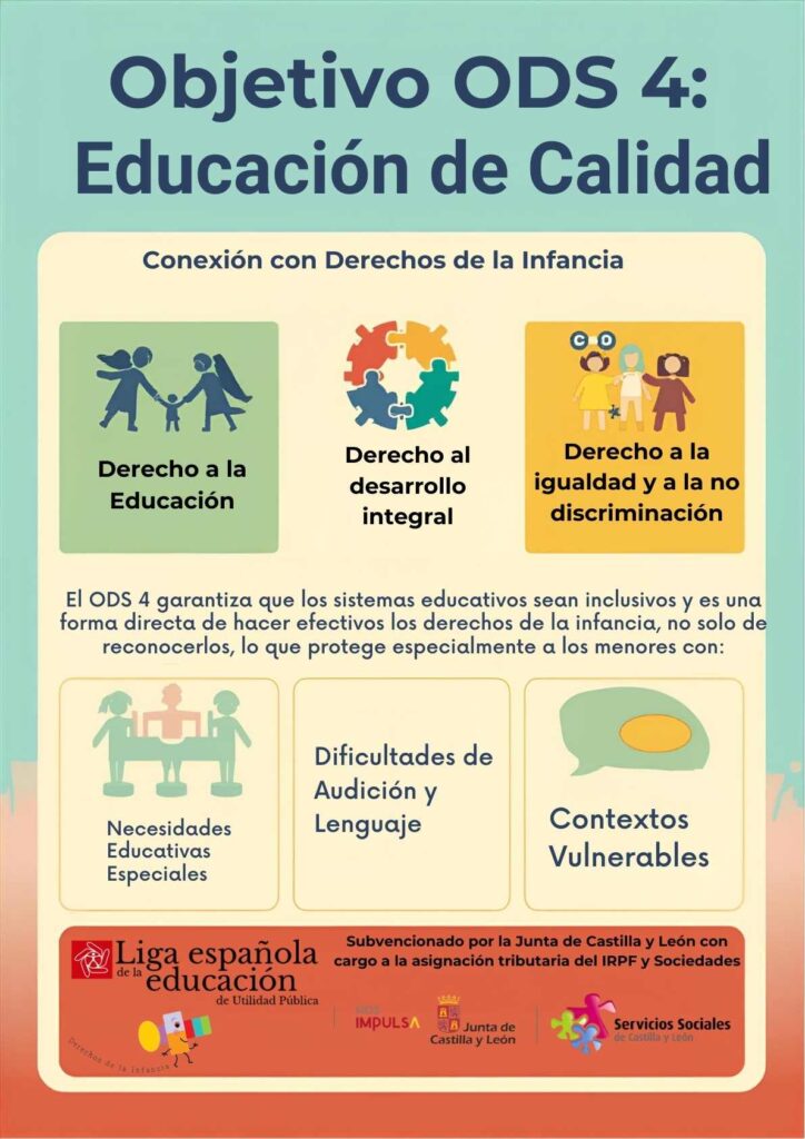 El material difundido destaca la conexión directa entre el ODS 4 y tres derechos fundamentales de la infancia: el derecho a la educación, el derecho al desarrollo integral y el derecho a la igualdad y a la no discriminación. Estos principios, reconocidos internacionalmente, son esenciales para asegurar que todos los niños y niñas puedan acceder a oportunidades educativas en condiciones de equidad.