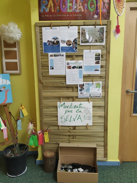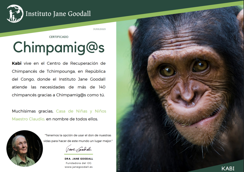 En el Día Internacional de la Mujer y la Niña en la Ciencia de 2020 investigamos sobre Jane Goodall y así es como conocimos su Instituto y las campañas que llevan a cabo. Nos atrapó desde el primer momento y quisimos que las familias lo conocieran. Desde entonces participamos, principalmente, en dos de sus campañas. La primera, ‘Movilízate por la Selva’, cuyo objetivo es el reciclaje del coltán, mineral presente en móviles y tablets. Por cada 30 terminales enviados se obtiene un apadrinamiento anual gratuito de uno de los chimpancés rescatados en su Centro del Congo (ya hemos apadrinado a cuatro chimpancés y estamos esperando el apadrinamiento del quinto.