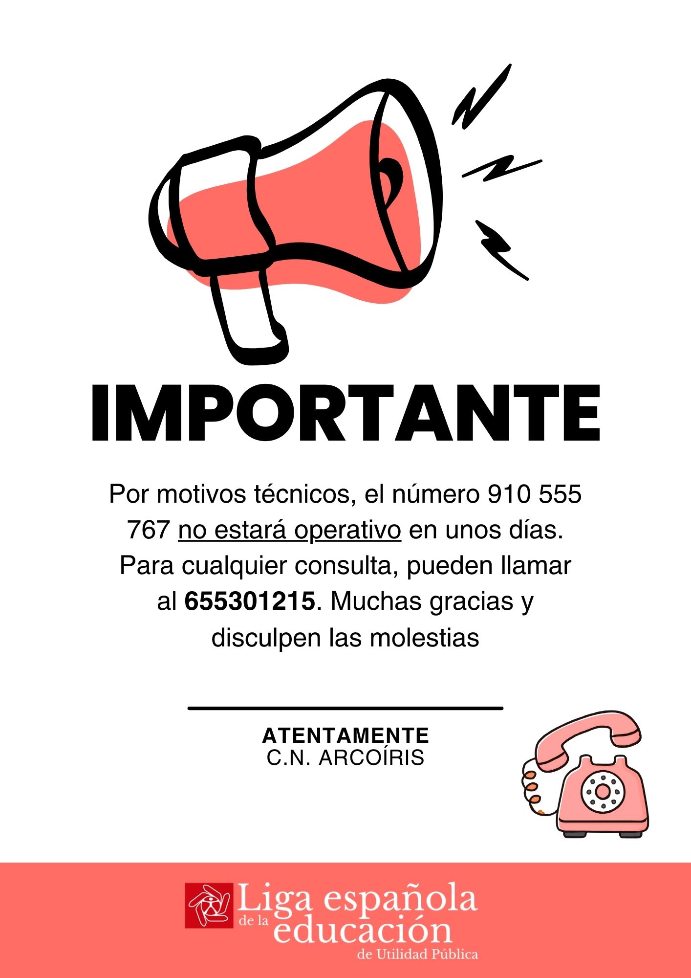 Teléfono: 655301215 y 910 555 767