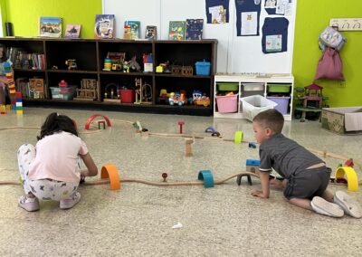 Para ello disponemos de tres aulas con diferentes finalidades para que puedan explorar su creatividad e imaginación: un aula con un rincón de lectura, un aula para llevar a cabo juegos de rol, y un aula destinada a la ejecución de talleres, visitas, juegos de psicomotricidad, etc.